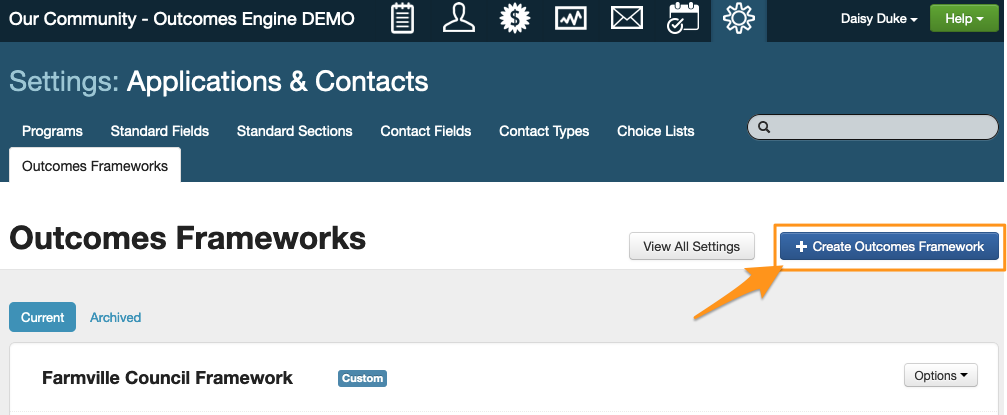1.2 Click ‘Create Outcomes Framework’ and Download the Outcomes Framework Template