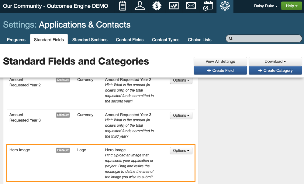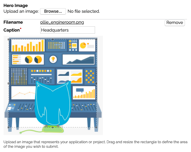 A default standard field has been created to allow you to collect a ‘hero image' from your applicants - an image that represents the project or application being undertaken. This image can be used to help you get a deeper sense of the application, and to help make your reports more appealing.