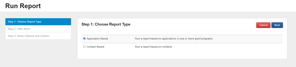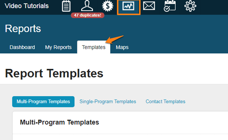 2. Click the Reports icon in the navigation panel at the top of your SmartyGrants screen.