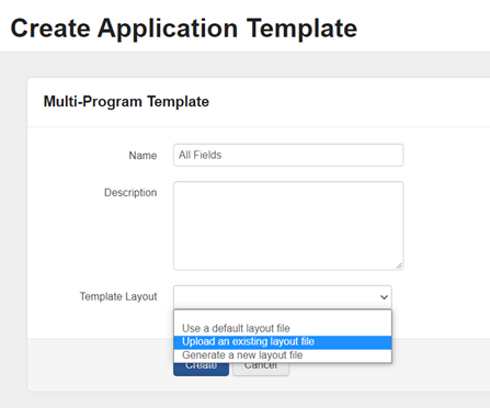 6. Name your template “All Fields” and select the “Upload an existing layout file” from the template layout