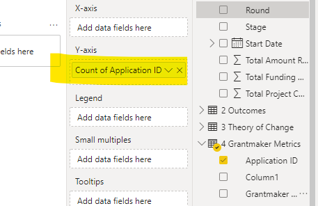 10. Select the 4 Grantmaker Metrics drop-down and select the “ApplicantID field”.