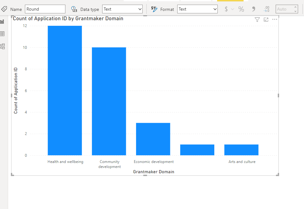 This shows you how many applicants are reporting outcomes in each of your outcome domains. This graph is also useful for helping you ‘sort’ the other graphs - see step 19.