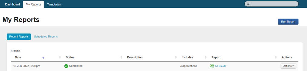 2. Upload this template and run the report (see the first 5 steps in the All Fields Report above on how to upload a template).
